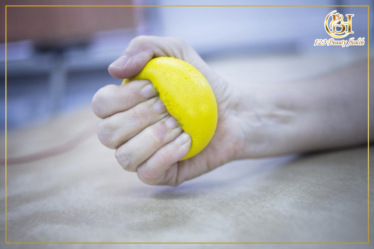 Siết tay: Bóp một quả bóng mềm hoặc quả bóng căng hết sức có thể trong 5 giây. Lặp lại 10 lần mỗi tay.